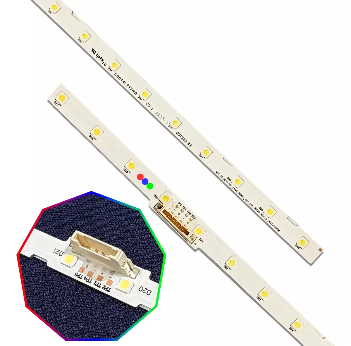 Kit de leds compatibles con Samsung nuevo, aluminio (2 piezas). Incluye cinta doble cara para su instalaciĂ³n.